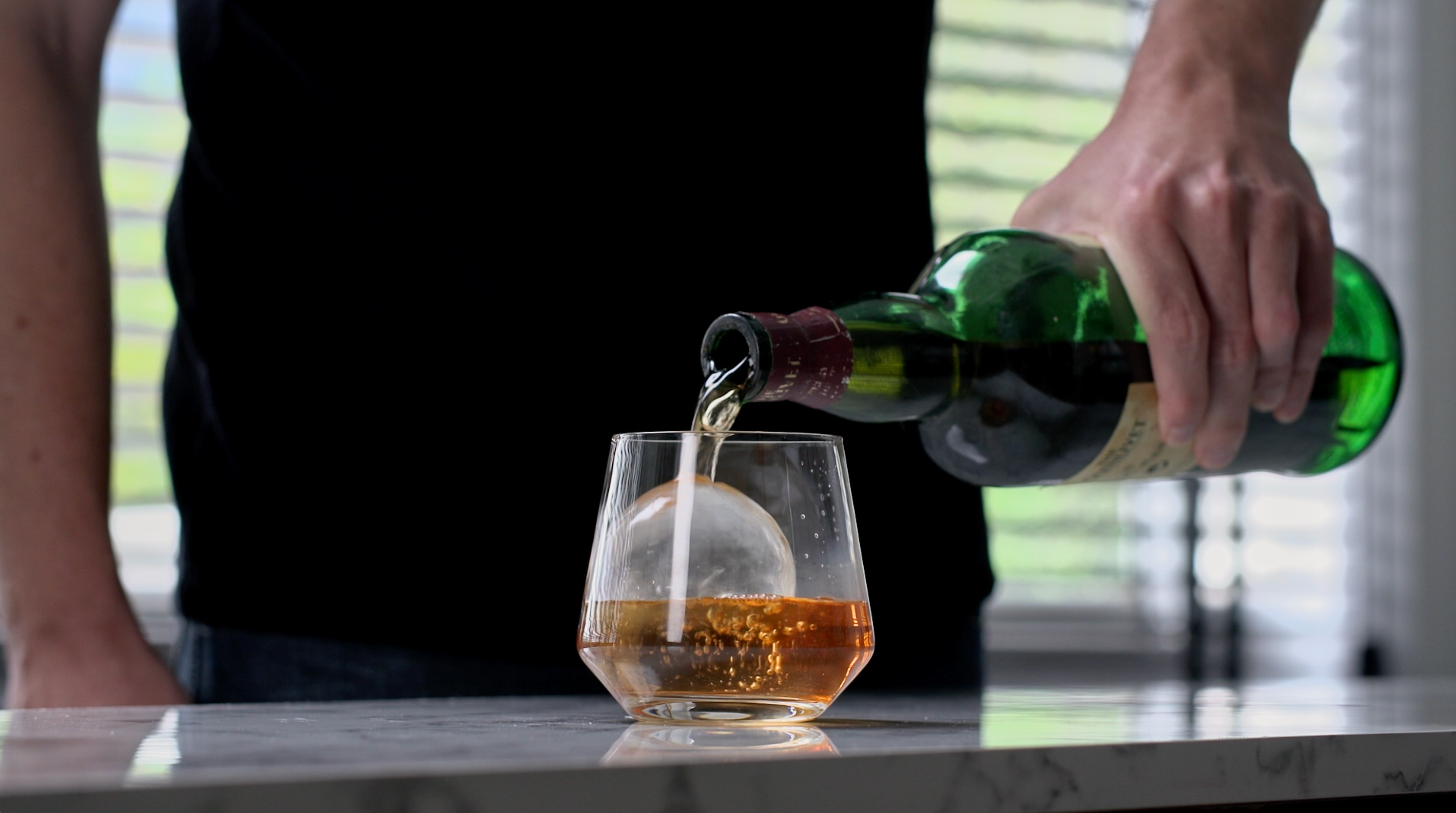 To prevent ice cracking, allow the ice to temper by resting in a glass for at least 2 minutes before pouring any liquid onto it. This process helps normalize the ice's temperature, ensuring it remains intact and visually appealing.